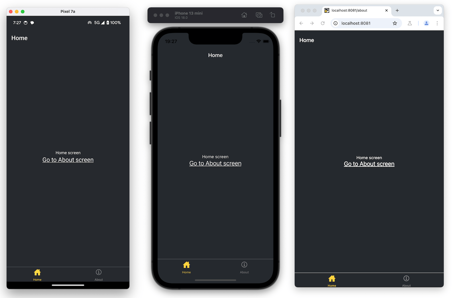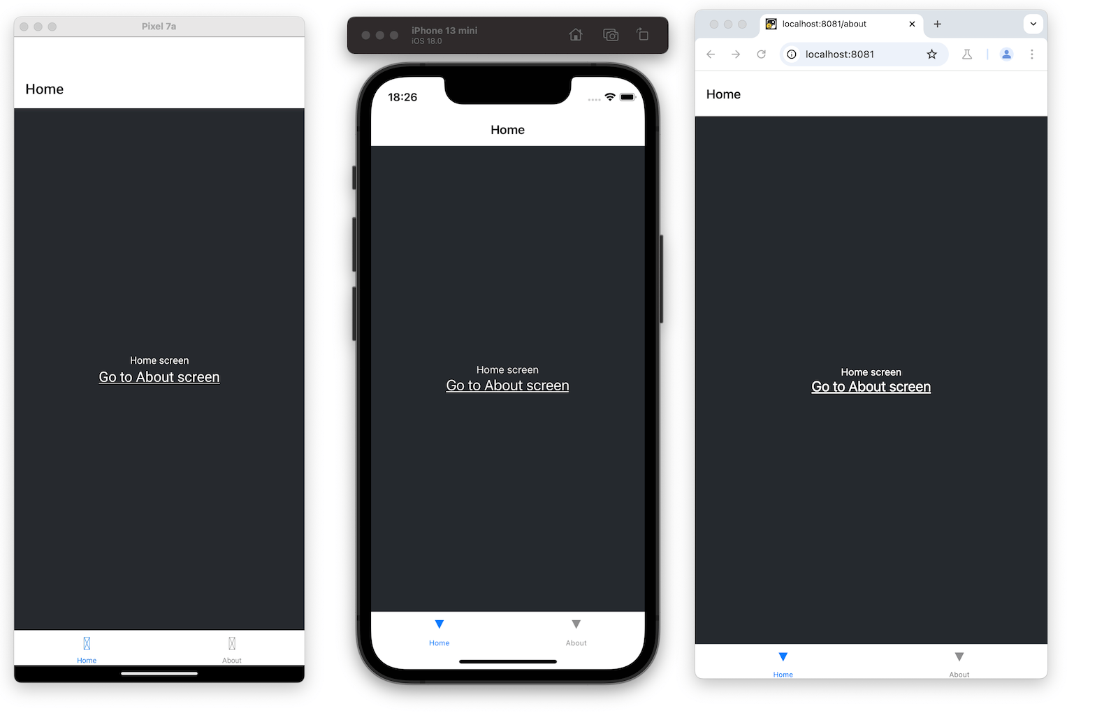 .js,.jsx,.ts, or.tsxextension. - Android, iOS, and web share a unified navigation structure.