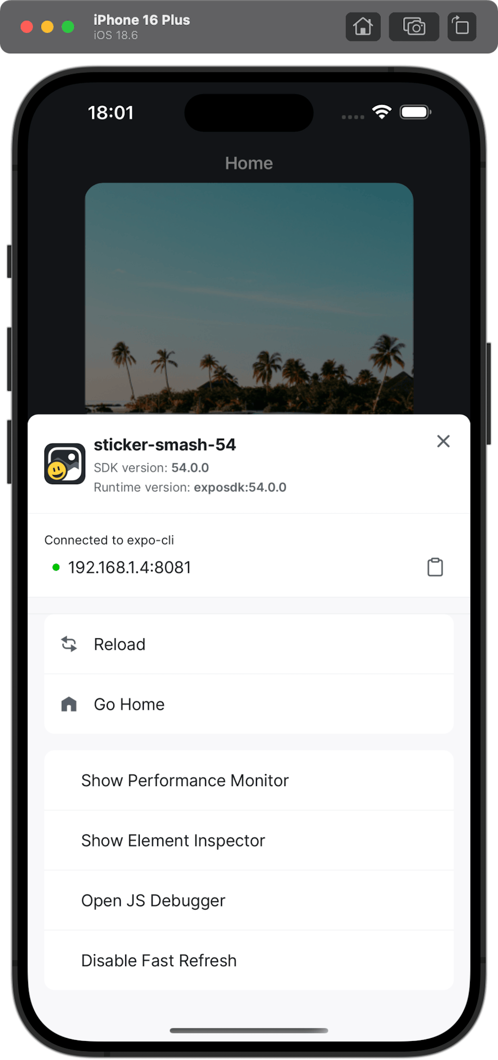 You can see the icon in various places in Expo Go. Here is an example of the app icon displayed in the developer menu of Expo Go: