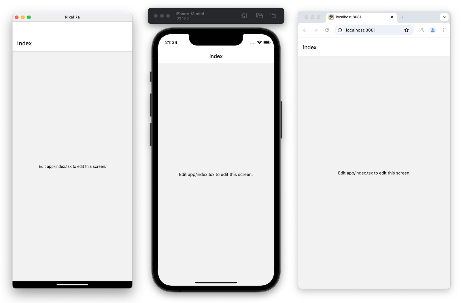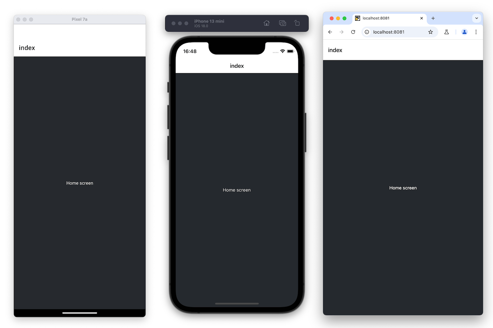 Once it is running on all platforms, the app should look like this:
