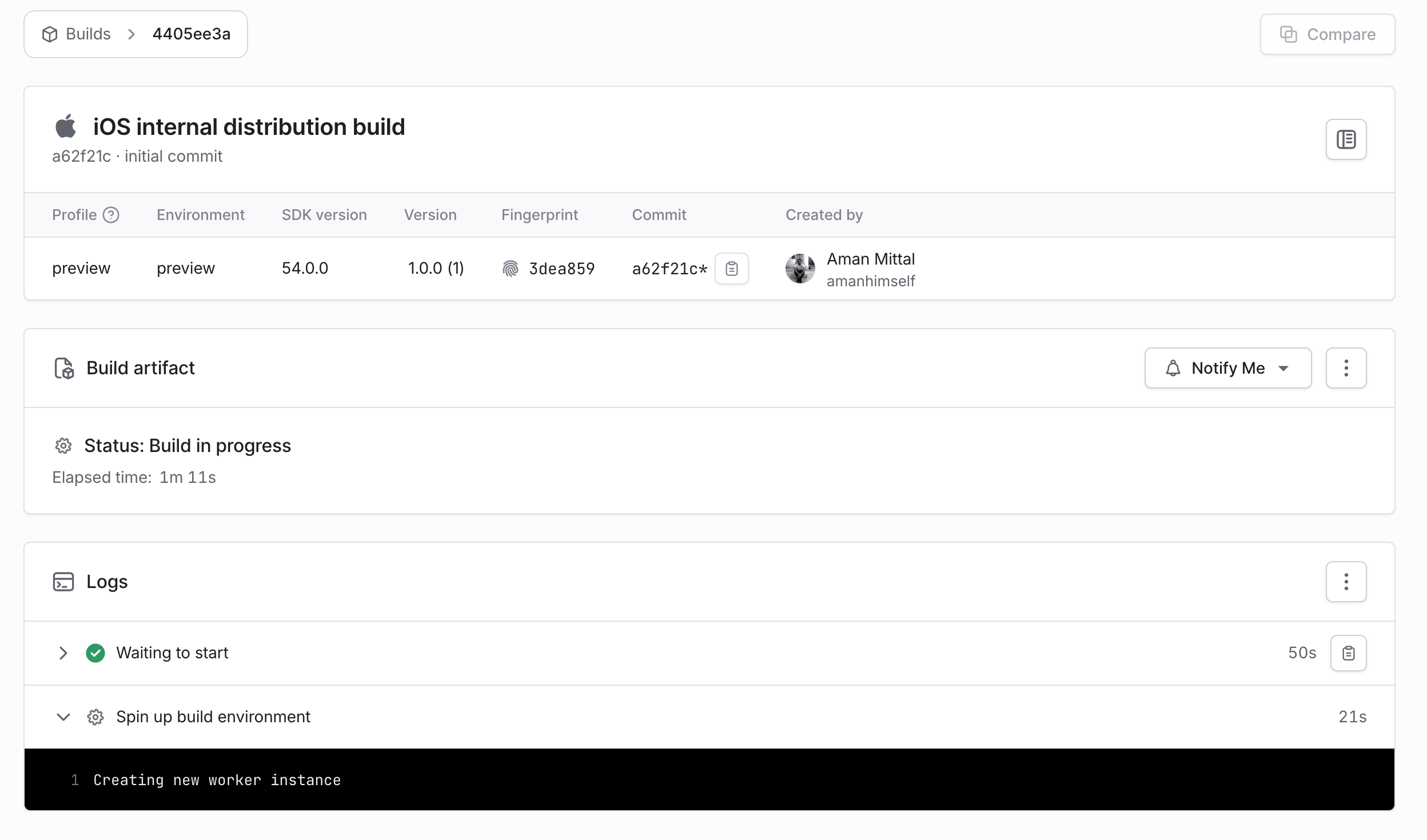- eas build --platform ios --profile preview- This command triggers the EAS Build, and on the EAS dashboard, we can see the build's progress: