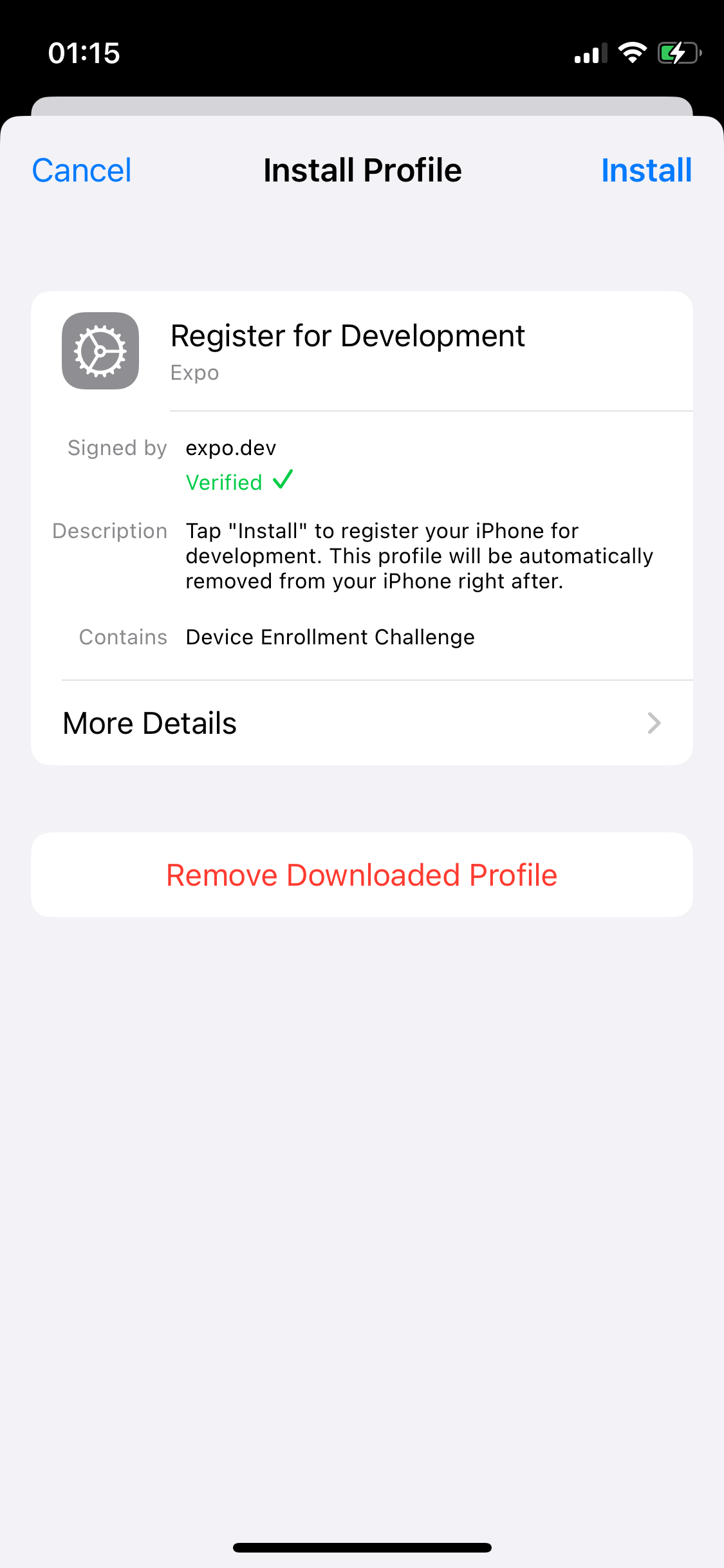 Tip: If you or your team have multiple devices, you can share the provisioning profile link with those devices for downloading and installing the profile.
