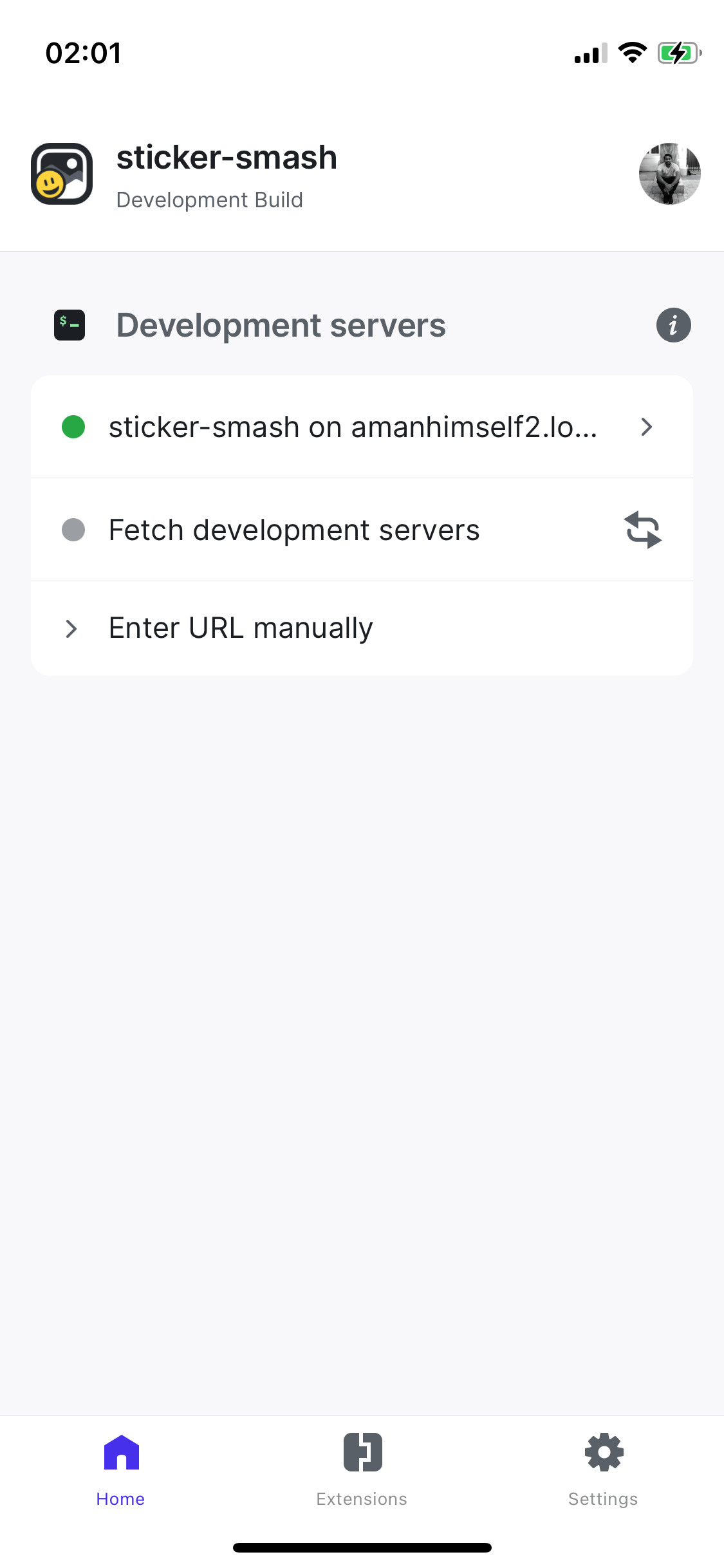 - Use the account syncing feature by ensuring we're logged into both the EAS CLI and development build. As we're already logged into the EAS CLI, the next step is to log in through the UI of your development build.