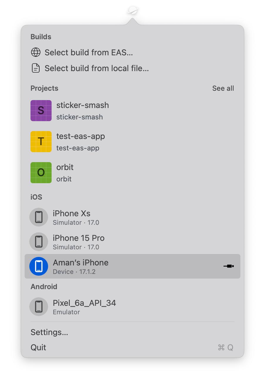 Expo Orbit allows for seamless installation of the development build on an iOS device. To use this method: